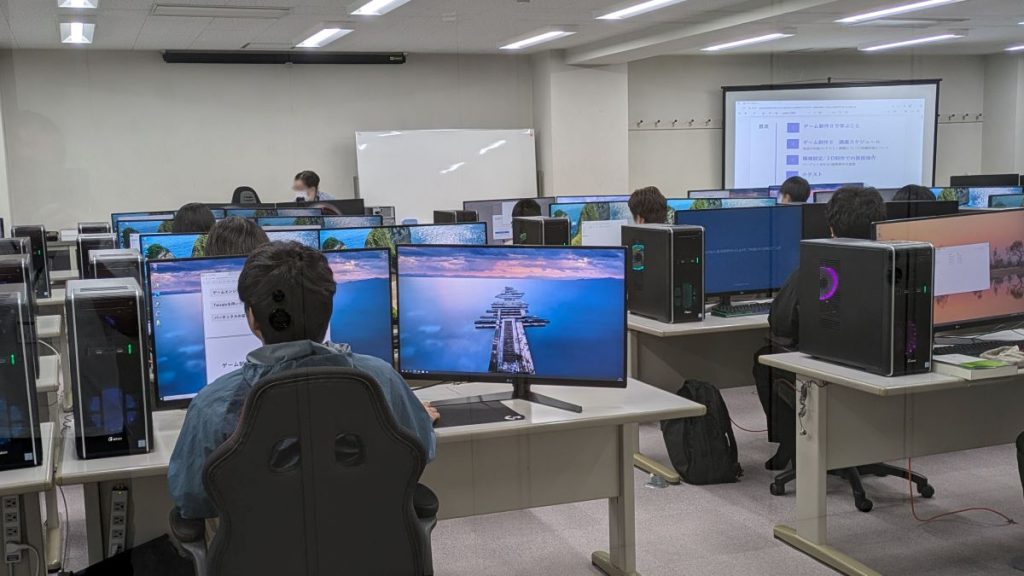 担当科目名は「ゲーム開発演習Ⅱ」で、ゲーム開発プラットフォーム「Unity(ユニティ)」とC#言語を用いてのゲーム開発を学ぶという内容です。